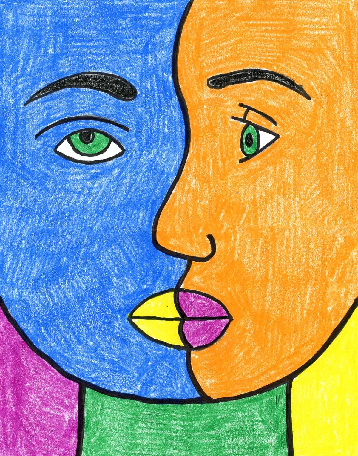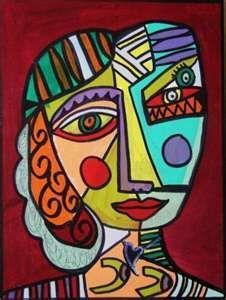 Picasso was an artist who liked to paint faces in a way that was different from what we usually see. Most of the time, when people draw faces, they try to make them look "fair" by making them neat and symmetrical (like both sides looking the same). But Picasso didn't do that. He would paint faces with parts broken up or changed in strange ways, like making eyes, noses, and mouths look different from each other.