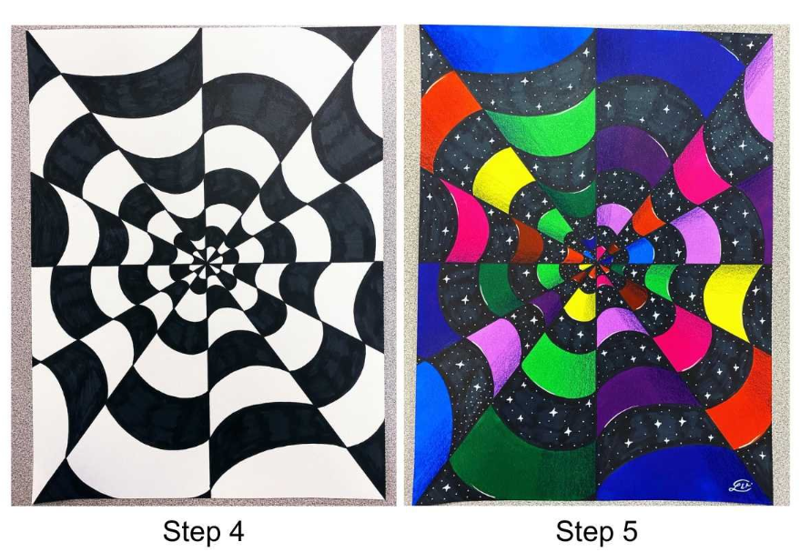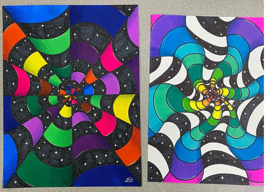 To do this, we must practise our use of perspective in art! Let's take inspiration from the fayre ground! When you whiz around on the tea cups or go head to head on the bumper cars the shapes and colours in the fayre are fascinating! Stars, stripes... beautiful! You might even feel a bit dizzy.