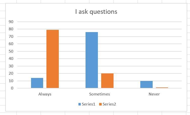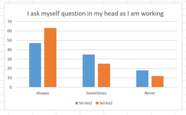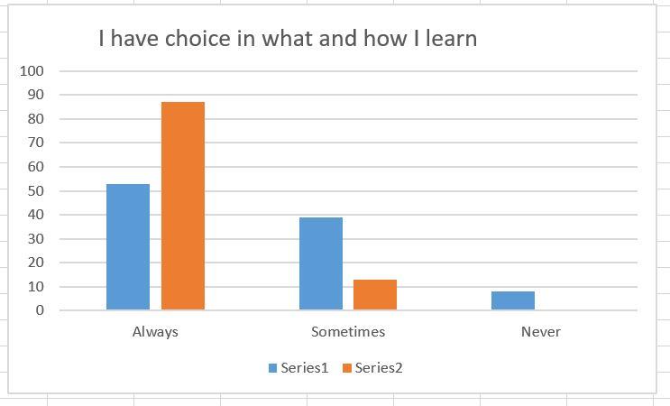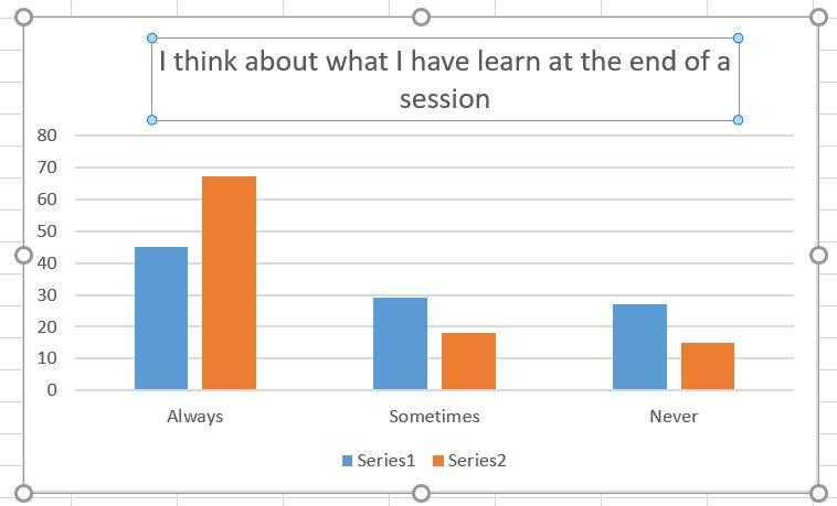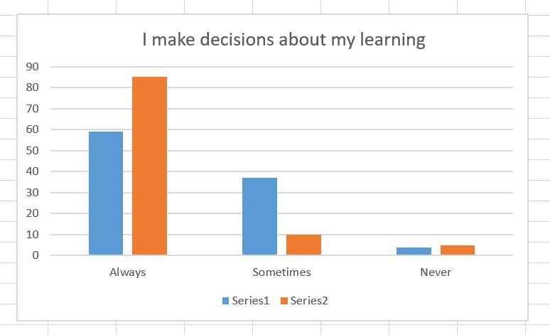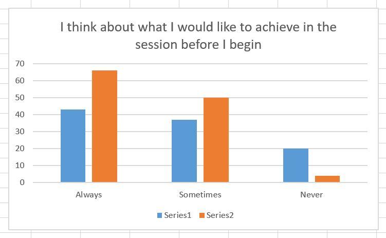 The data shows that more pupils feel they are more active in their learning by planning their sessions, asking questions and reflecting. The data shows that some pupils feel that they would like to work together more in this session, which is reflected in their responses from question 10 (see below).