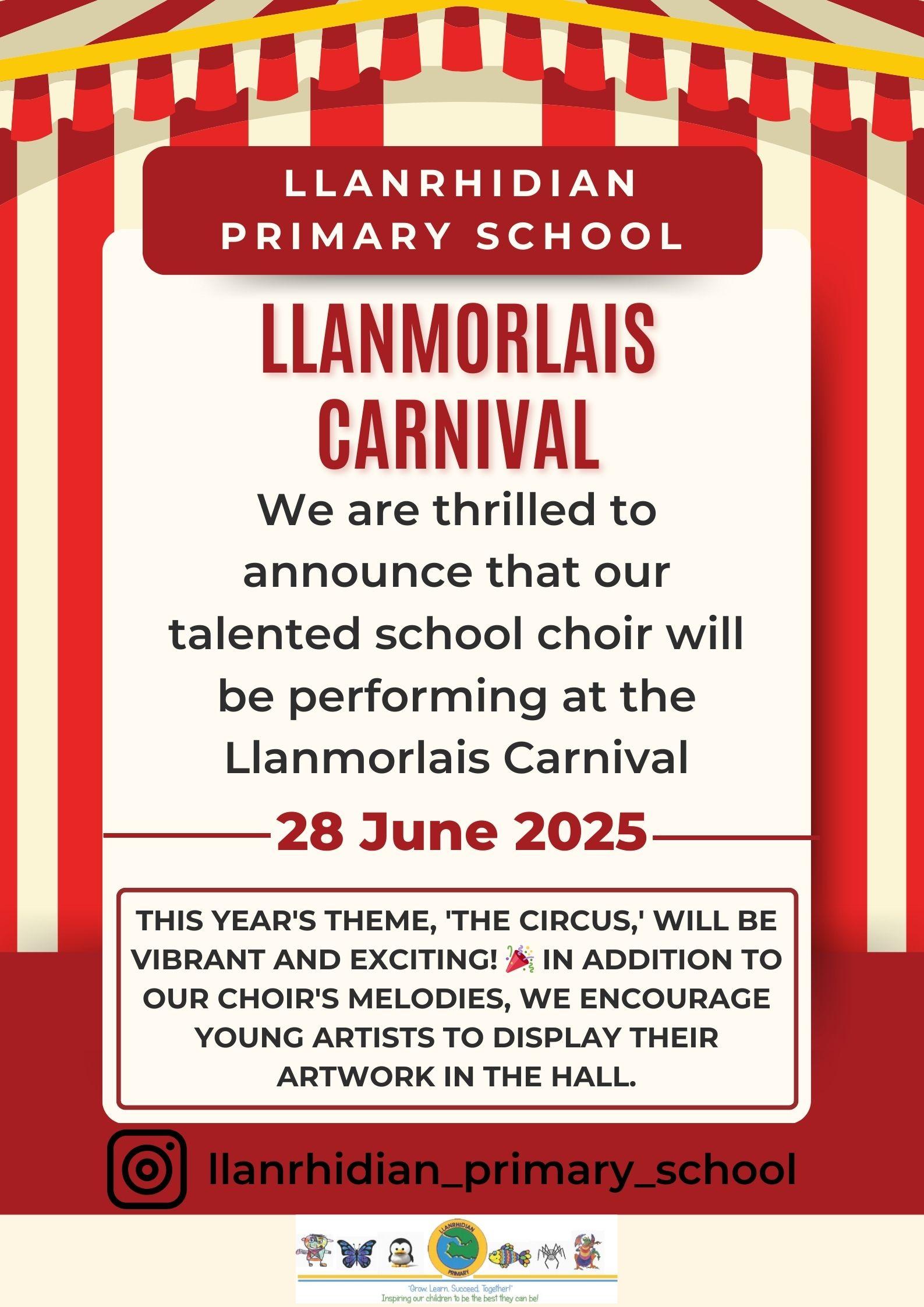 We are thrilled to announce that our talented school choir will be performing at the Llanmorlais Carnival on 28th June! Year 2 to Year 6! ️ As many of you know, our choir has been a highlight of this event over the years, and we can’t wait to share our music with the community once again.