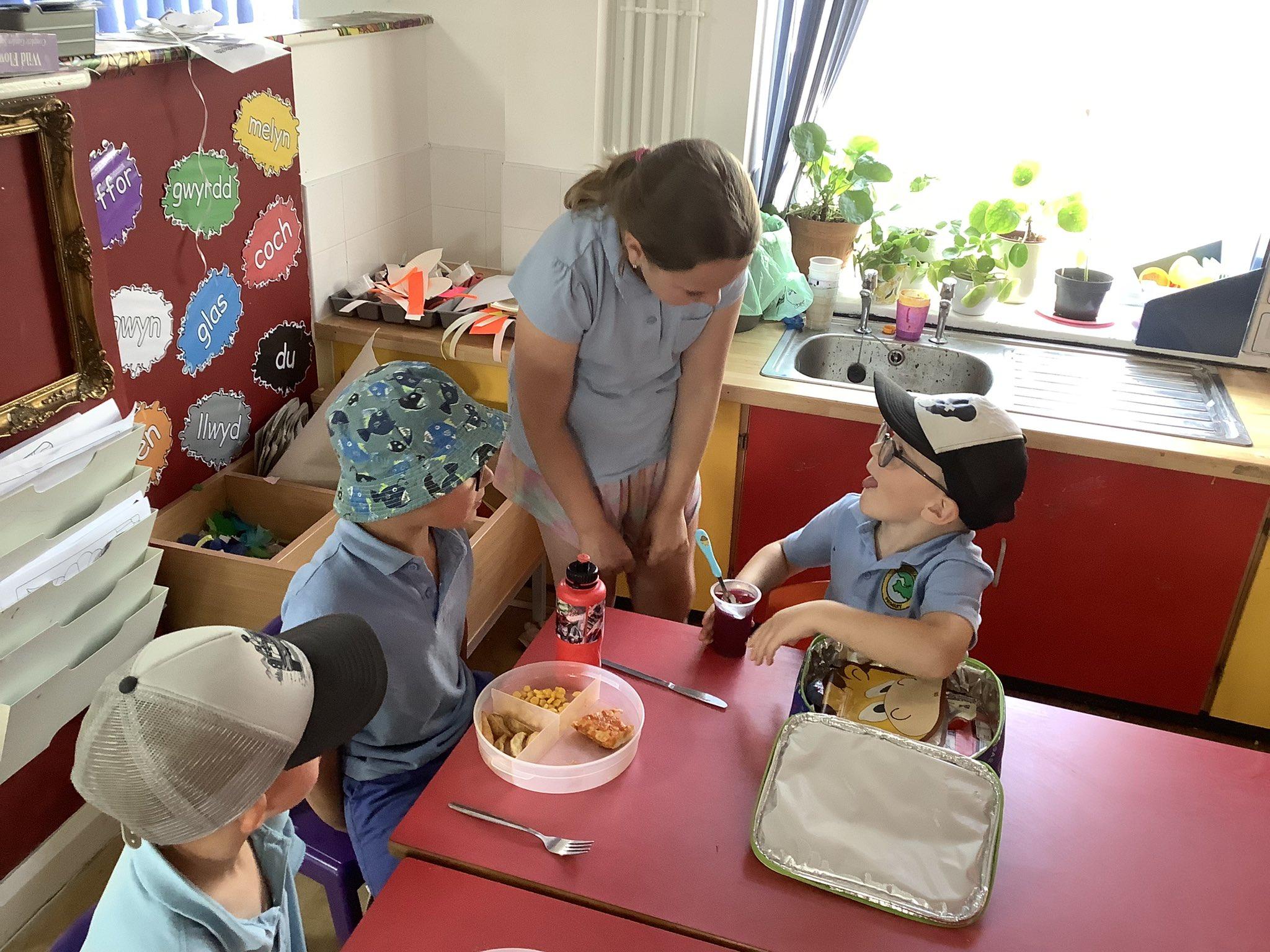 Capten Cinio: These pupils are the lunch-time heroes, guiding younger peers through their dining experience. Their responsibilities include serving food, solving lunchtime dilemmas, and supporting staff—all while ensuring no one is late for their shift!