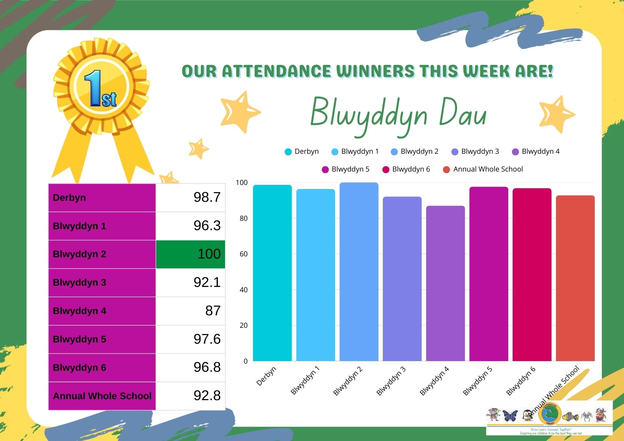 Autumn Term Winners are - Blwyddyn Dau with 100 %