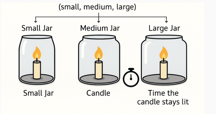 - Example: Candles need oxygen to burn, and a small jar has less oxygen.