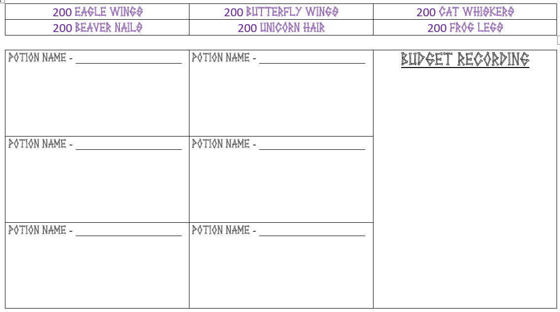 Chilli 2 - Ingredient amounts in 10s. Budget of 200 per item.