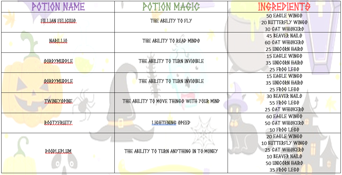 Chilli 3 - Ingredient amounts in 5s and 10s. Budget of 500 per item.
