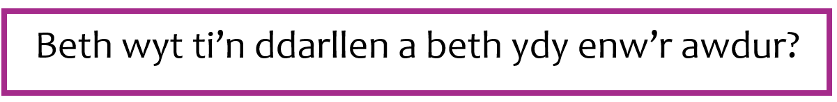 Dw i'n darllen... Enw'r awdur ydy..