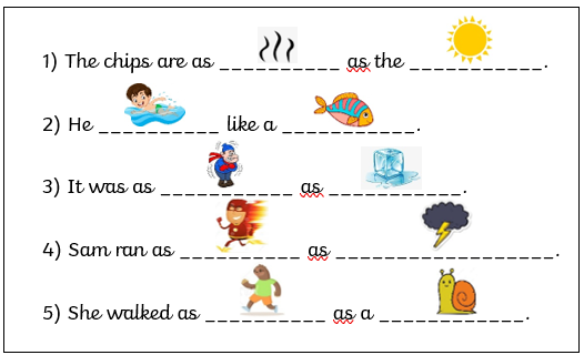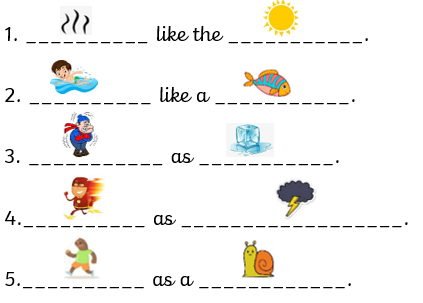 Chilli 1 - Use the pictures to help complete the simile sentences. Rewrite them into your books.