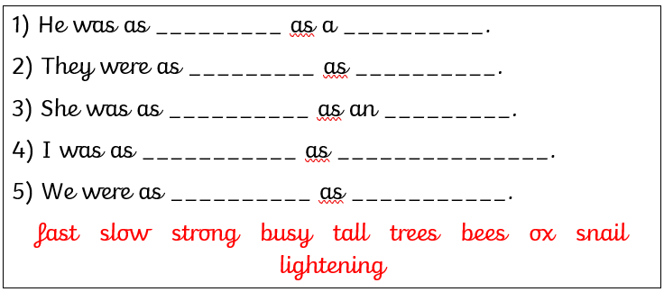 Chilli 2 - Use the word bank to help you create simile sentences. Rewrite the sentences into your books.