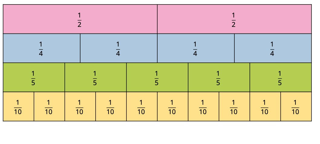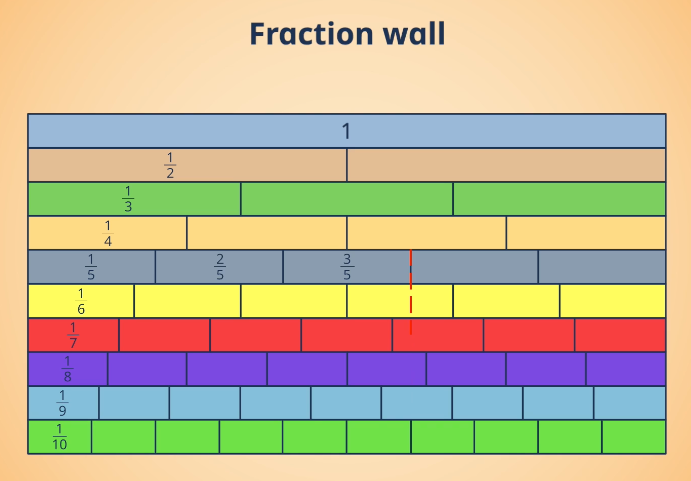 A Fraction Wall can help us find equivalent fractions. For example, 1/2 is the same as 5/10. Why is that?
