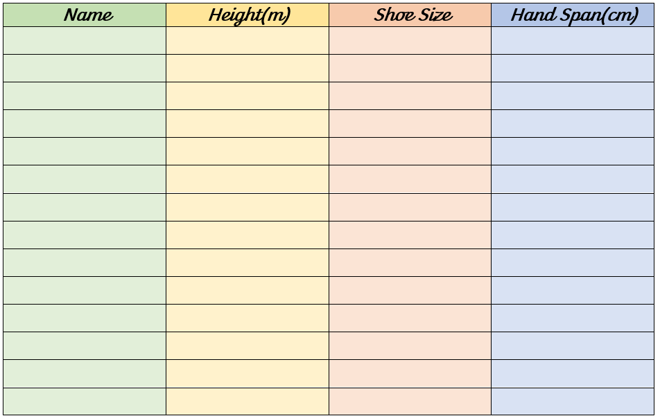 Can you research the height, hand span and shoe size of the pupils within the Pod? Record your results.