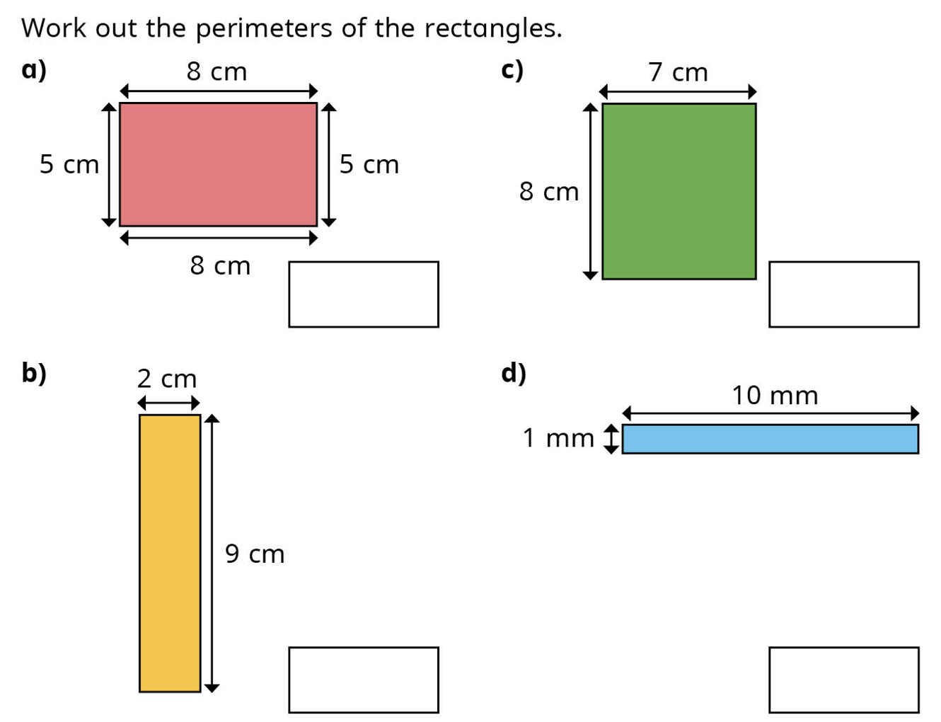 LO to find the area and perimeter of 2D shapes (rectangles and squares leading on to triangles).