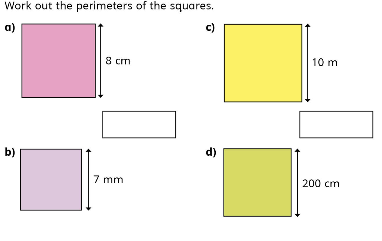 LO to find the area and perimeter of 2D shapes (rectangles and squares).