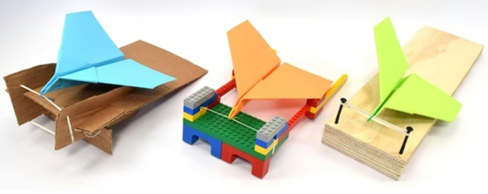 Let's build aeroplane launchers! You can use one of three materials; Lego, cardboard or wood.