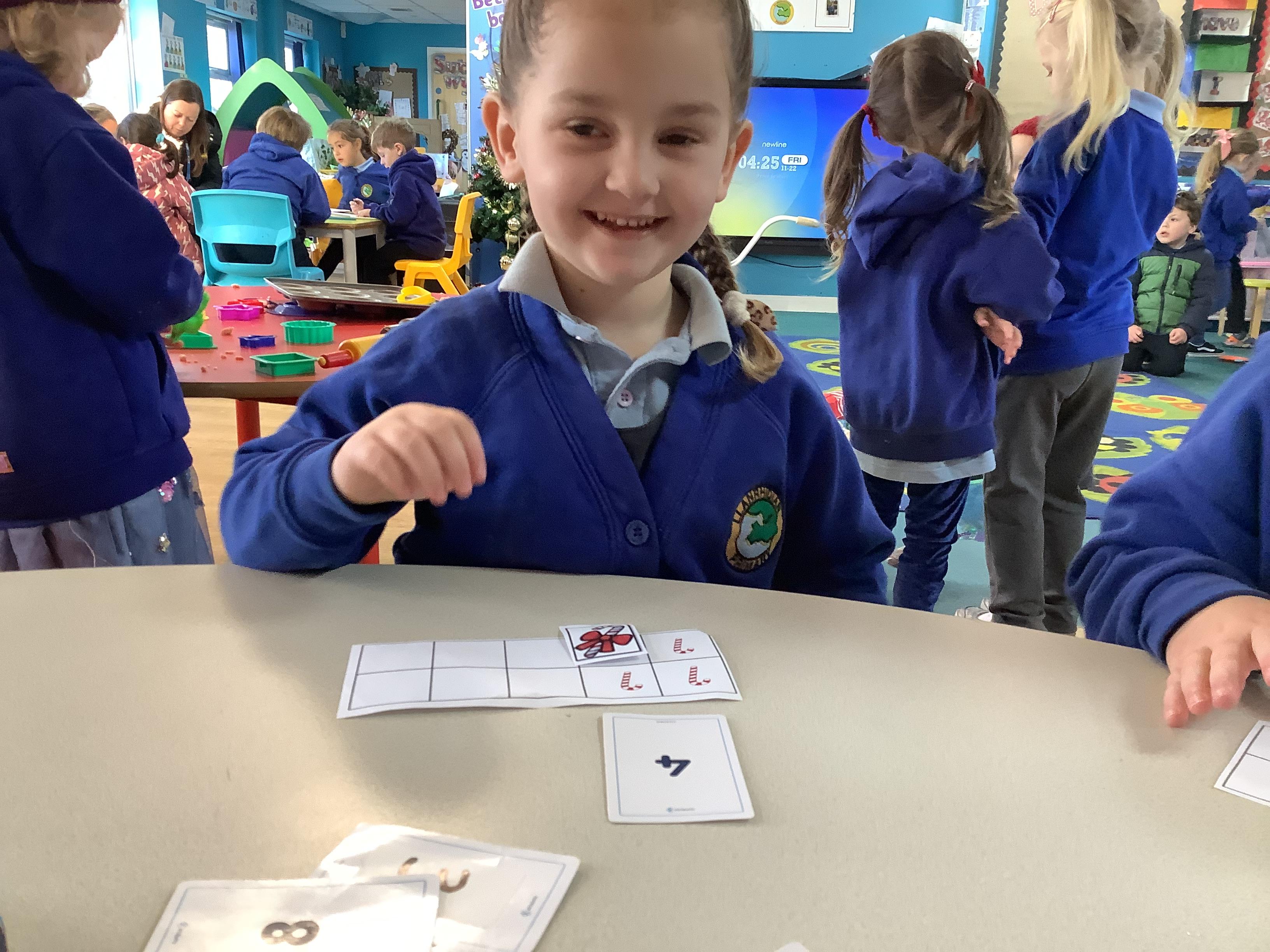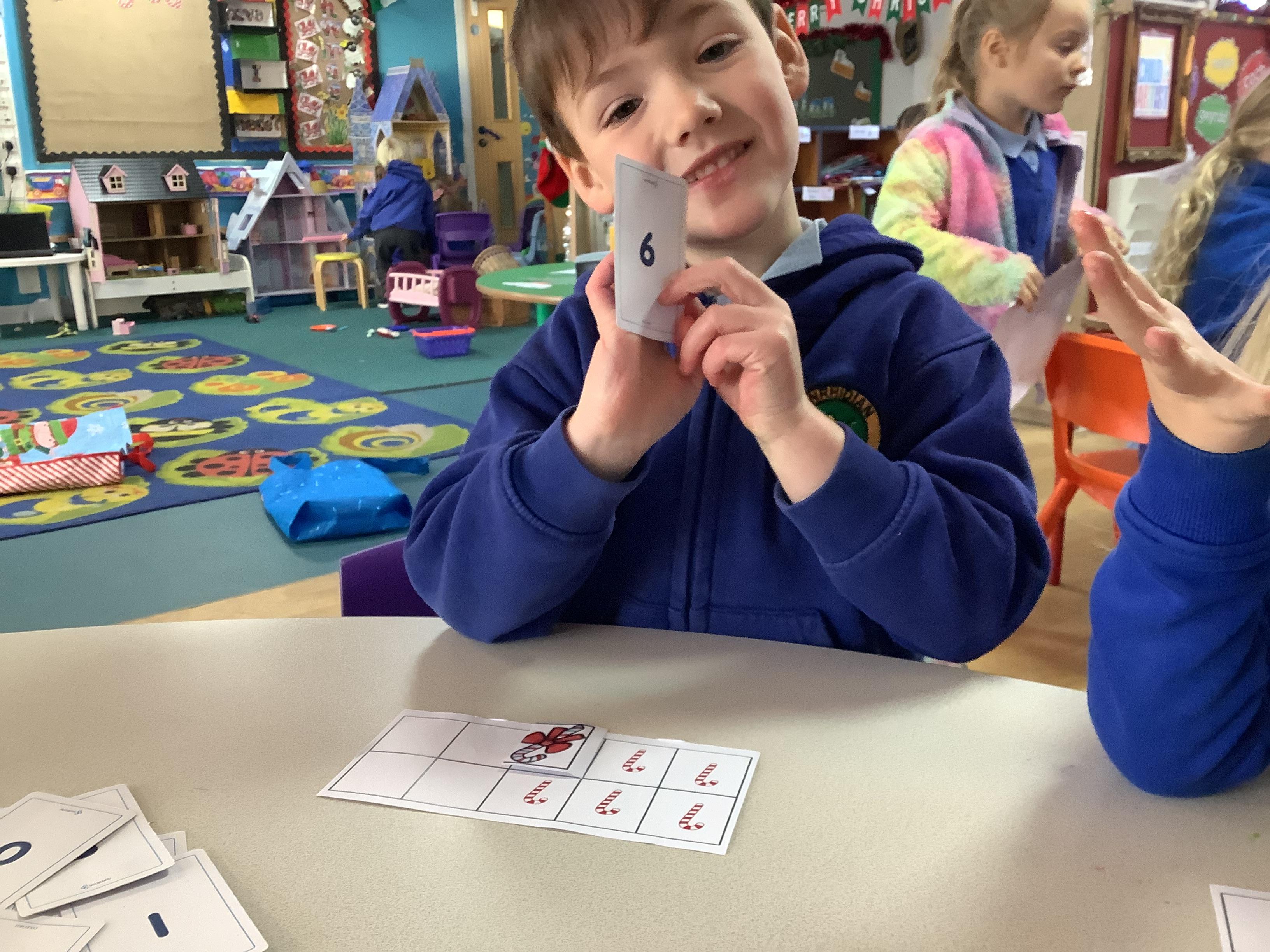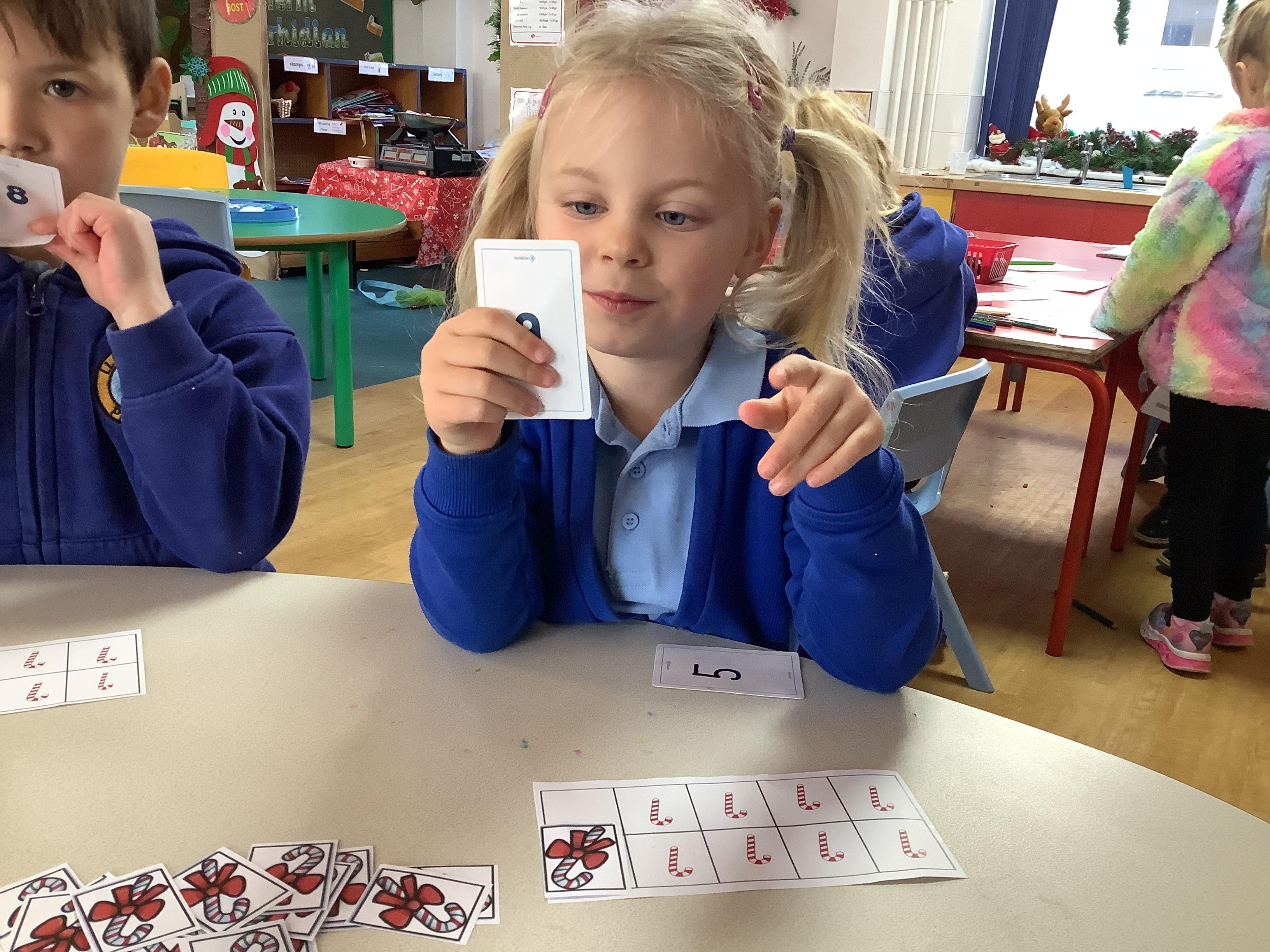 Hugo is getting better at sharing and has now decided that he would like to give each of his friends a Christmas treat. He would like to give one pudding away at a time. Can you help show him how he would do this using your maths skills?