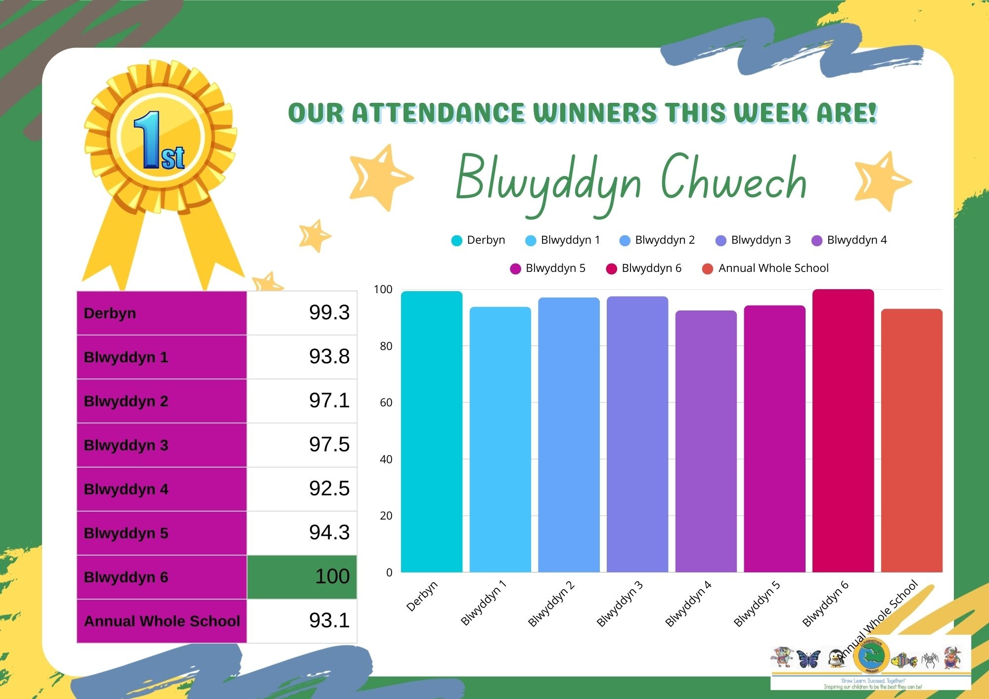 Autumn Term Winners are - Blwyddyn Dau with 100 %