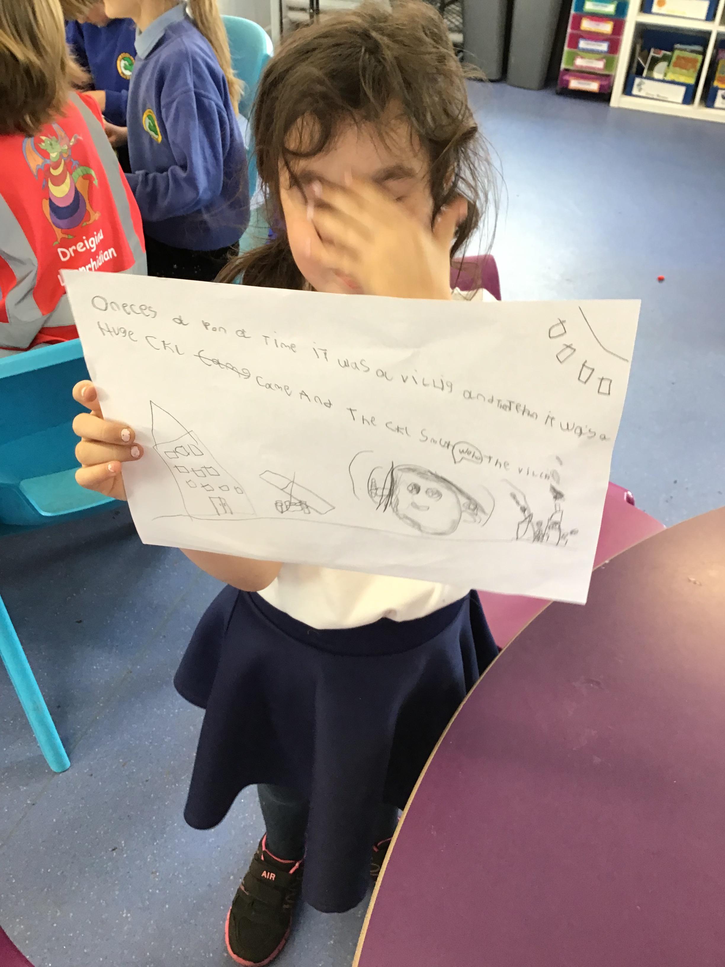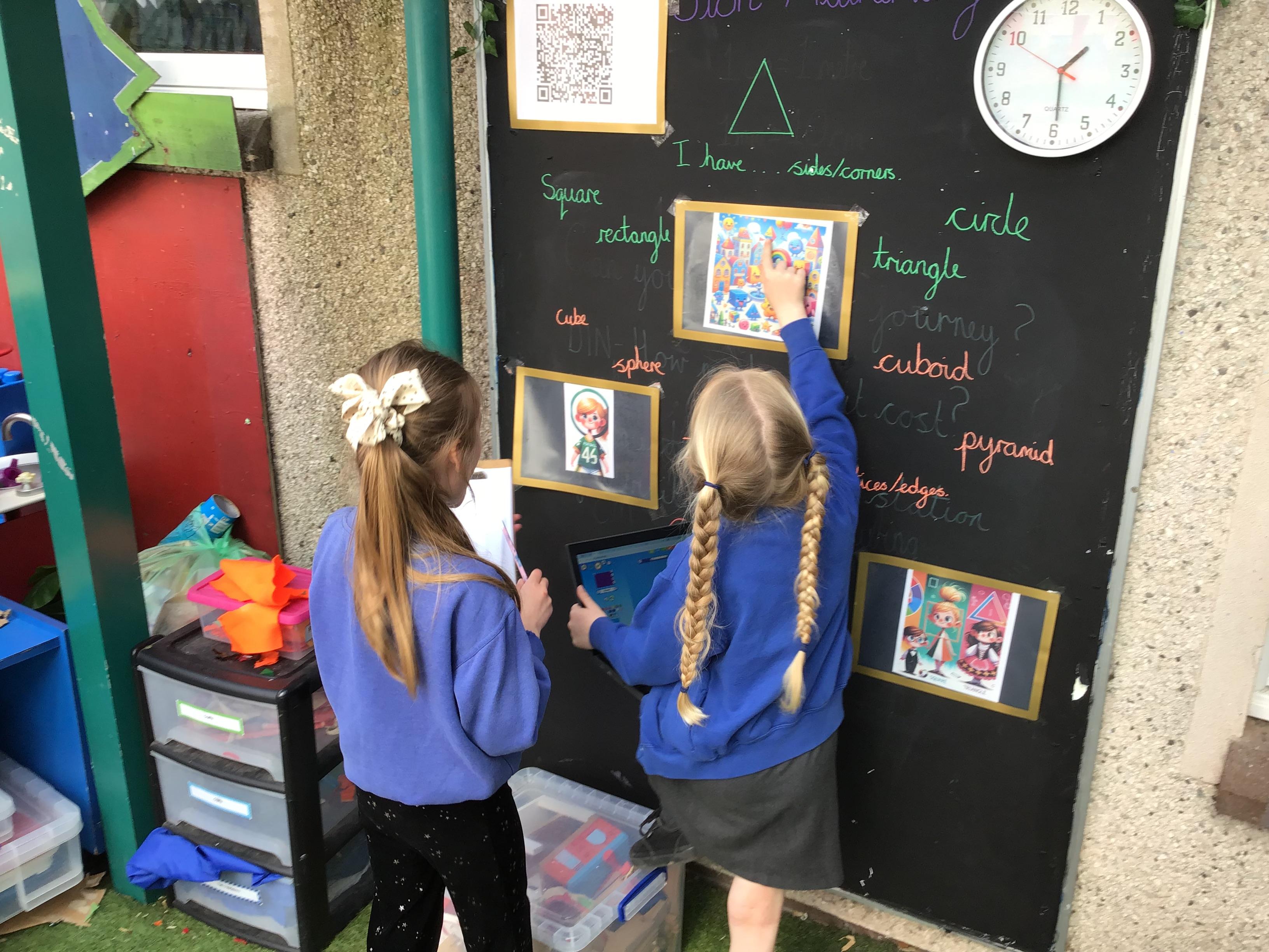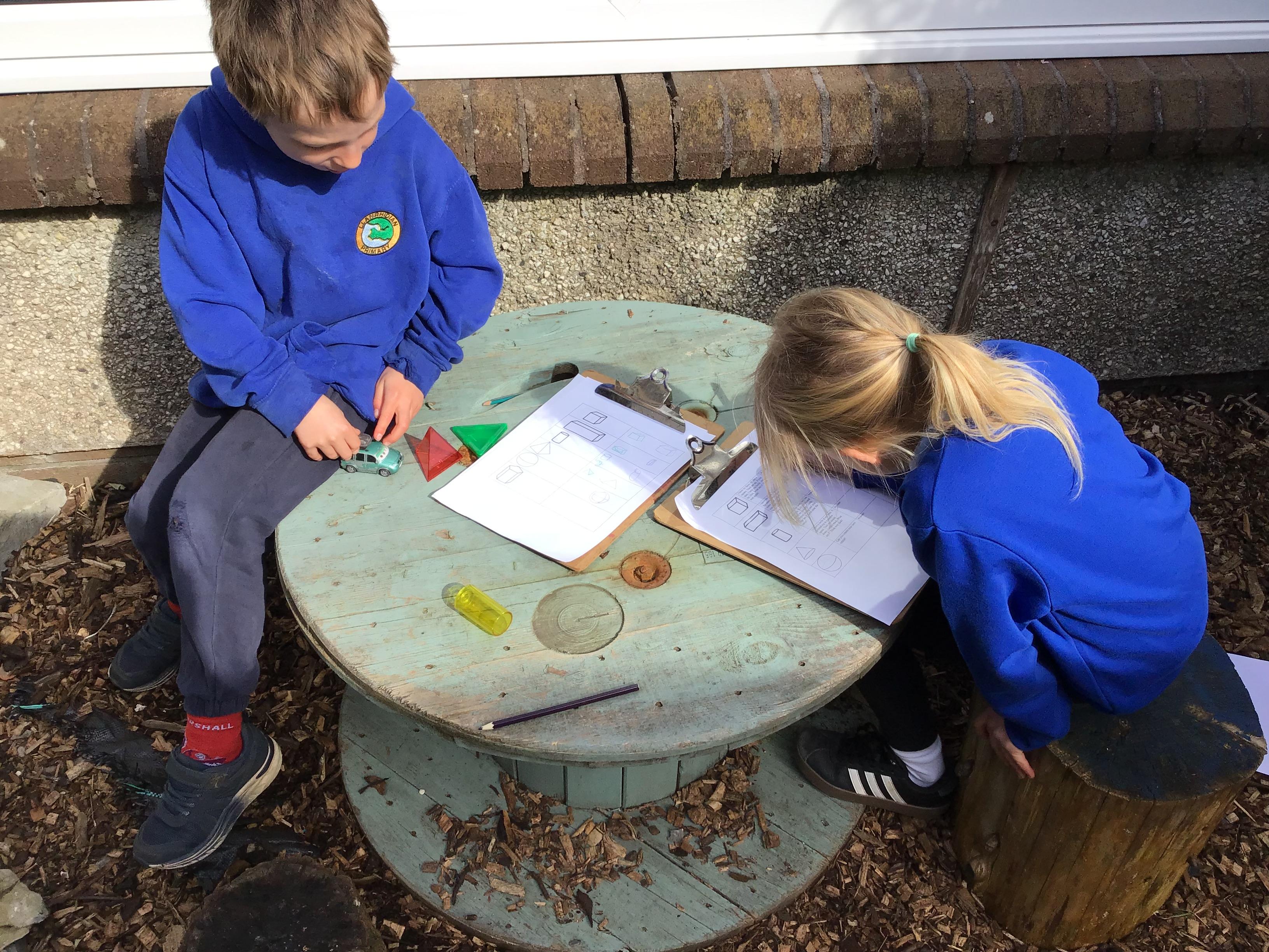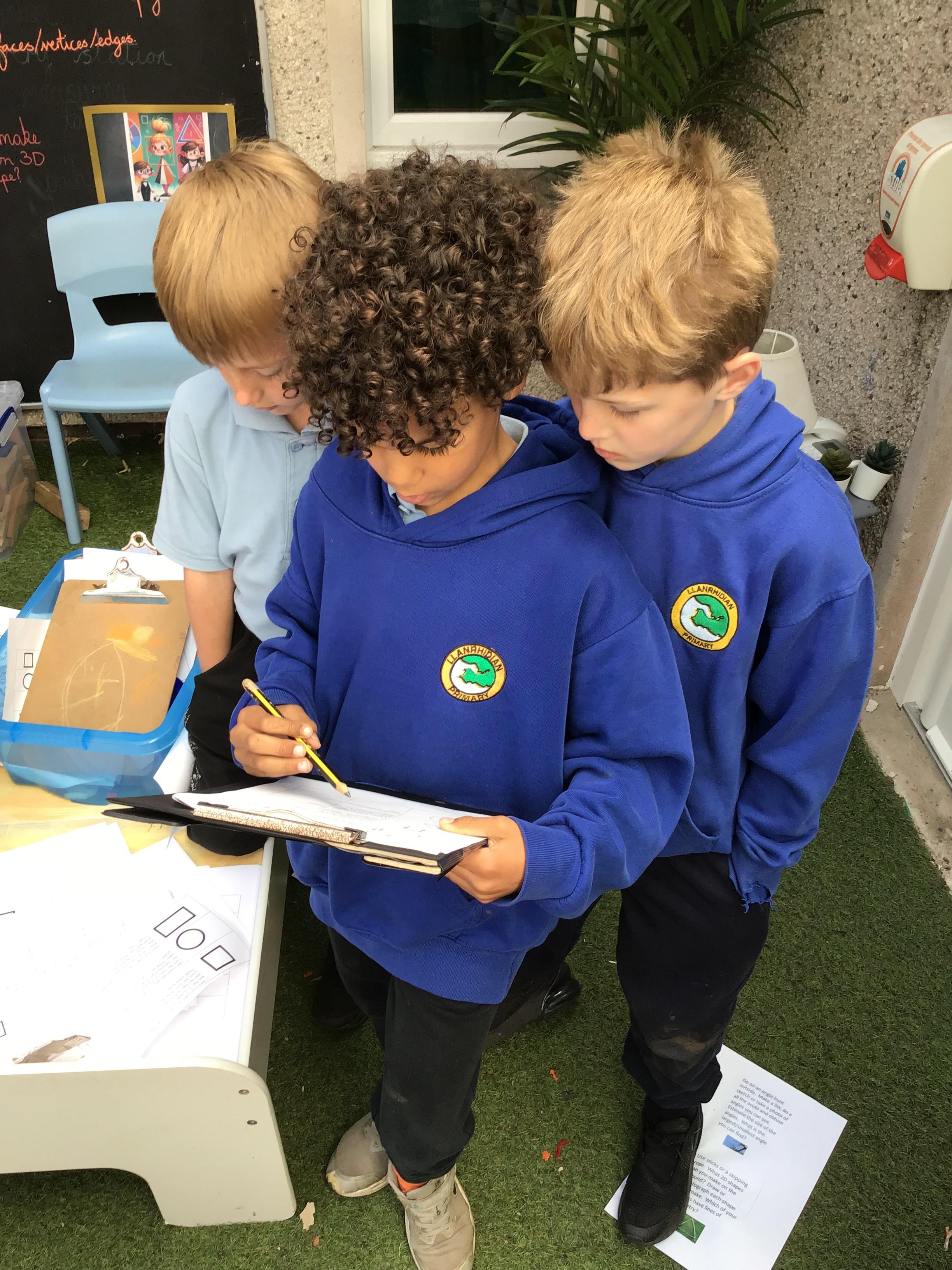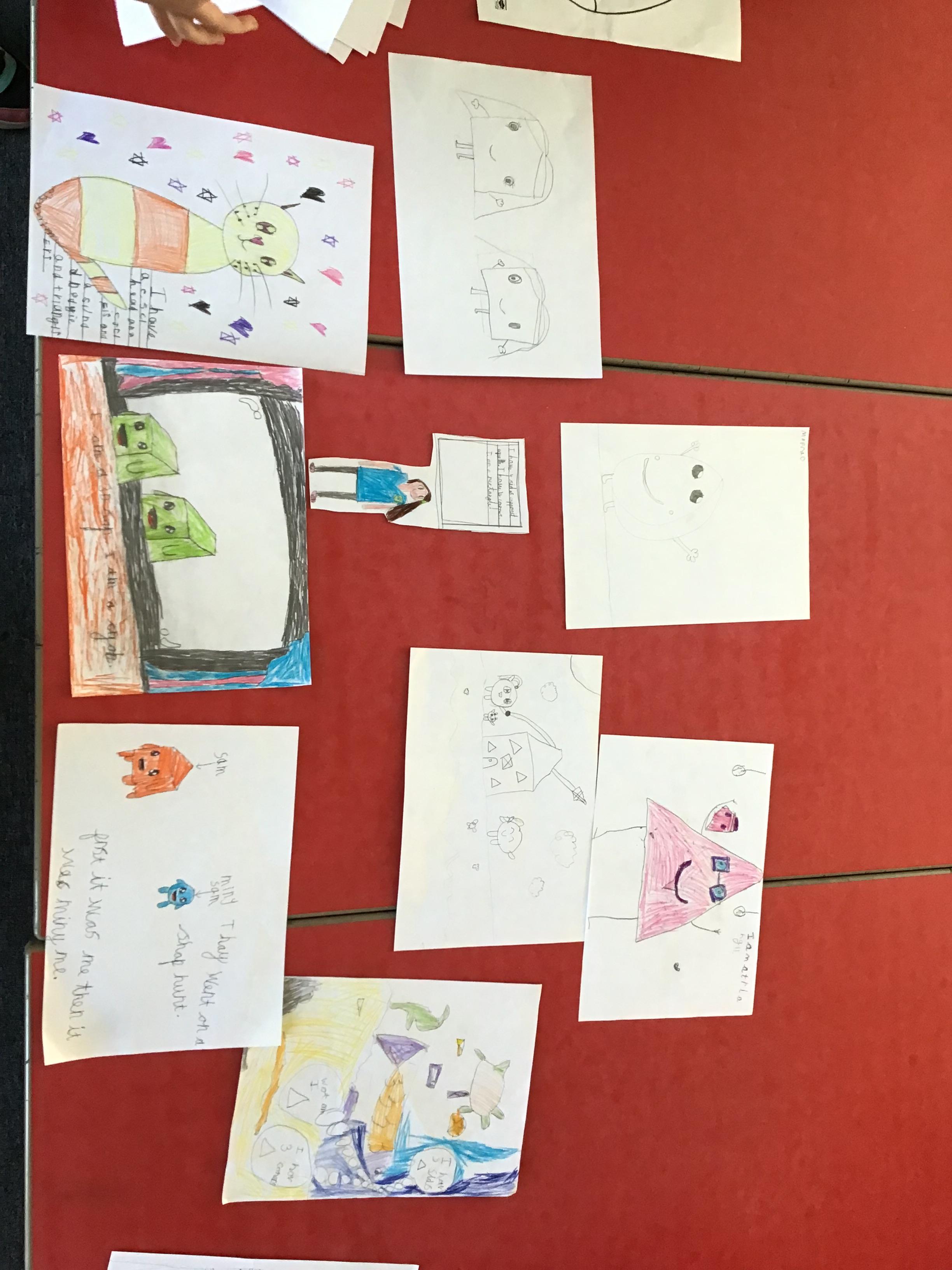 First, they reached a clearing with clipboard on the ground. There was a shape scavenger hunt. However it was no ordinary scavenger hunt. The clues were riddles. The clue read ‘I have one side and no corners, what am I?’. Summer shouted excitedly “It’s me, I am a circle!”. The others cheered good job Summer. They worked their way through the clues: