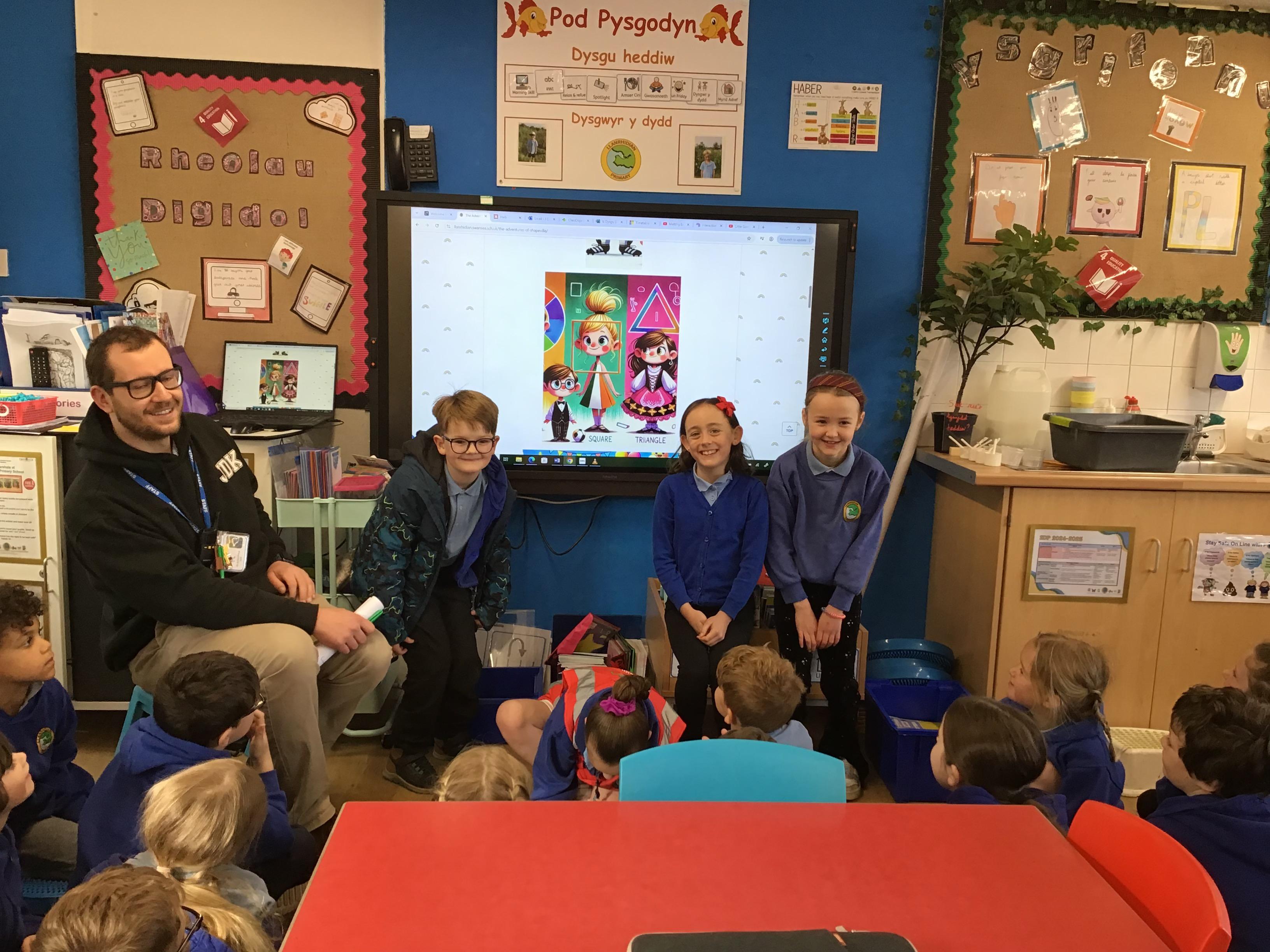 The little shapes recognised their friends properties and solved the riddles. “Perfect! Now the puzzle is complete.”